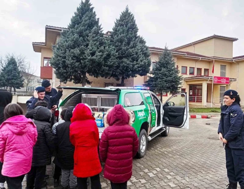 Çocuklar merak ettiklerini sordu, jandarma abi ve ablaları cevap verdi.
