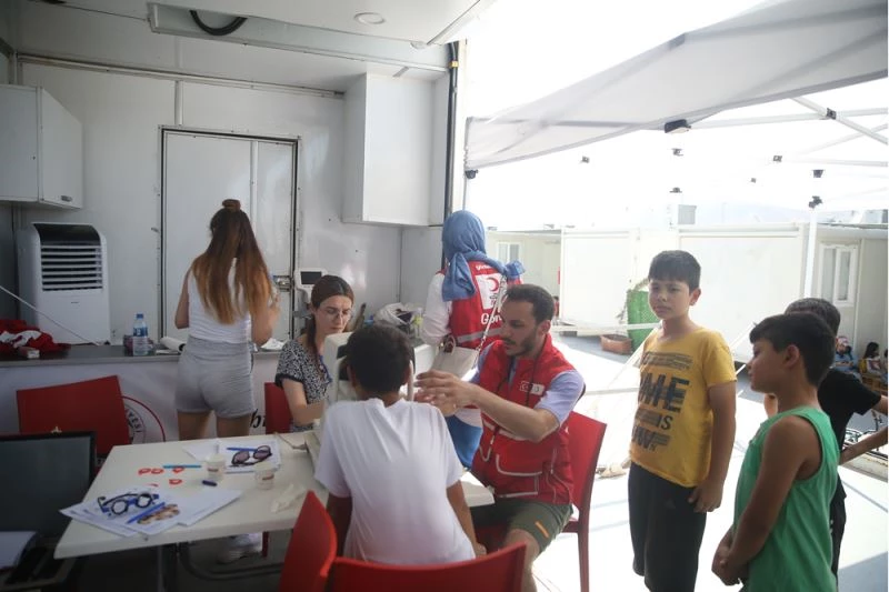 KAHRAMANMARAŞ - Kahramanmaraş'ın Türkoğlu ilçesinde "Sevgi ve sağlık tırı projesi" kapsamında konteyner kentte kalan çocuklara göz taraması yapıldı.