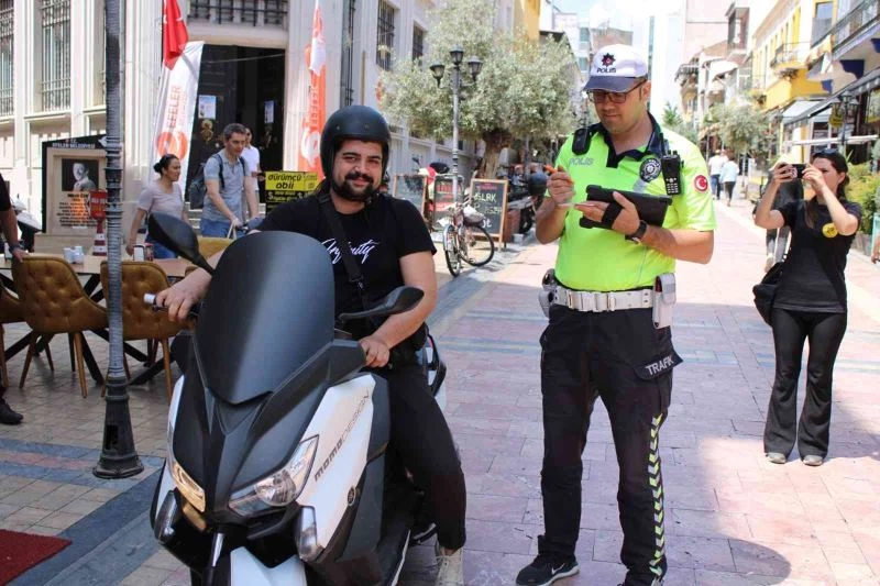 Aydın Trafik Denetleme Şube Müdürlüğü koordinesinde Efeler ilçe merkezi başta olmak üzere il genelinde gerçekleştirilen trafik denetimleri aralıksız devam ediyor. Özellikle yaya ve trafik yoğunluğunun olduğu bölgelerde yapılan denetimlerde sürücüler, yaya önceliği başta olmak üzere trafik kuralları konusunda bilgilendiriliyor. Bu çerçevede trafiğe kapalı olan bölgelerde de artan motosiklet kullanımı ile ilgili harekete geçen ekipler Sevgi Yolu’nda motosiklet denetimi gerçekleştirdi. Bölge artan motosiklet kullanımı ve usulsüz parklar dolayısıyla vatandaş ihbarını da değerlendiren ekipler, gün içerisinde yaptıkları denetimler ile motosiklet sürücülerini uyardı, evrak eksiği bulunan motosiklet sürücüleri ise ceza yemekten kurtulamadı.