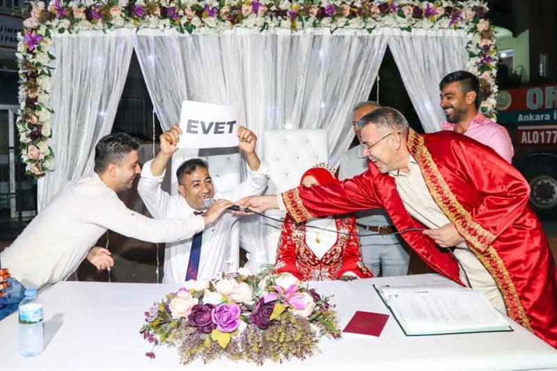 Başkan Güler, sosyal medya hesabı üzerinden de yaptığı paylaşıma ise “Bir kez daha gördük ki sevginin aşamayacağı engel yoktur. Pınar Dönmez ve Zafer Çetin kardeşlerimizin nikah merasimlerini gerçekleştirdik, bu mutlu günlerine ortak olduk. Yeni çiftimizi gönülden kutluyor, iki cihan saadeti diliyorum” notunu düştü.