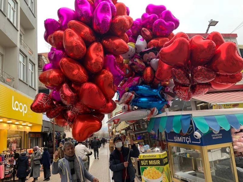Eskişehir’de, Sevgililer Günü’nün gelmesi kalpli balon satıcılarına yaradı.