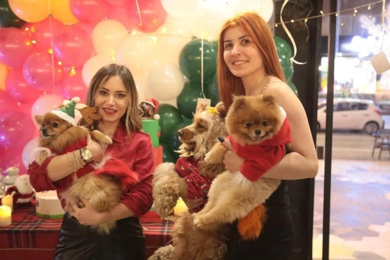 Partiye katılanlar, pastalar önünde yılbaşı kostümleri giydirdikleri sevimli dostlarla hatıra fotoğrafları çektirdi.