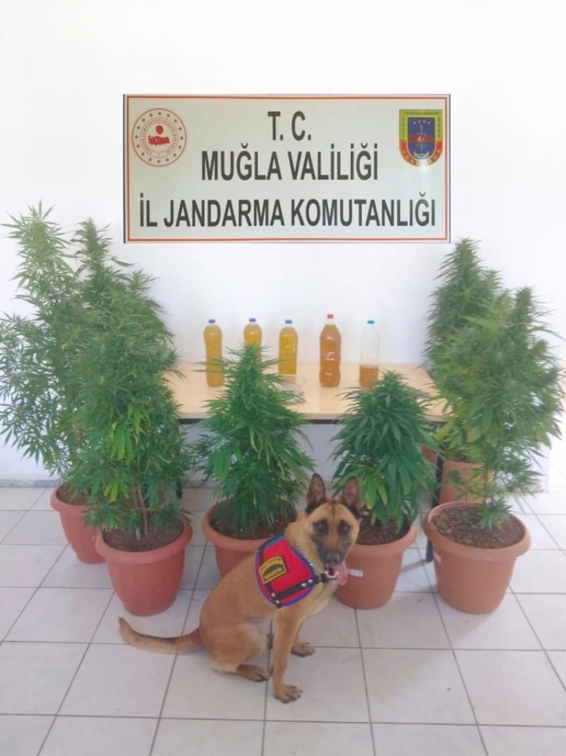 Muğla İl Jandarma Komutanlığı İstihbarat Şube Müdürlüğü ekipleri tarafından yapılan çalışmalar sonucu, Seydikemer Ören Mahallesi’nde ikamet eden Ö.U. isimli şahsın evinin bahçesinde kenevir bitkisi ektiği bilgisi alındı. İstihbarat Şube Müdürlüğü ile Seydikemer İlçe Jandarma Komutanlığı ekipleri tarafından şahsın evinde yapılan aramada 58 kök kenevir bitkisi, 7,5 kilogram pet şişelerde likit esrar, 25 gram kubar esrar, 10 gram kenevir tohumu ve 1 adet hassas terazi ele geçirildi. Olayla ilgili olarak Ö.U. isimli şahsın gözaltına alındığı öğrenildi.