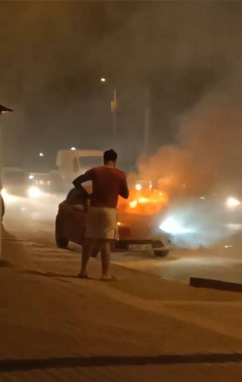 Seyir halinde alev alan otomobilden son anda kurtuldu