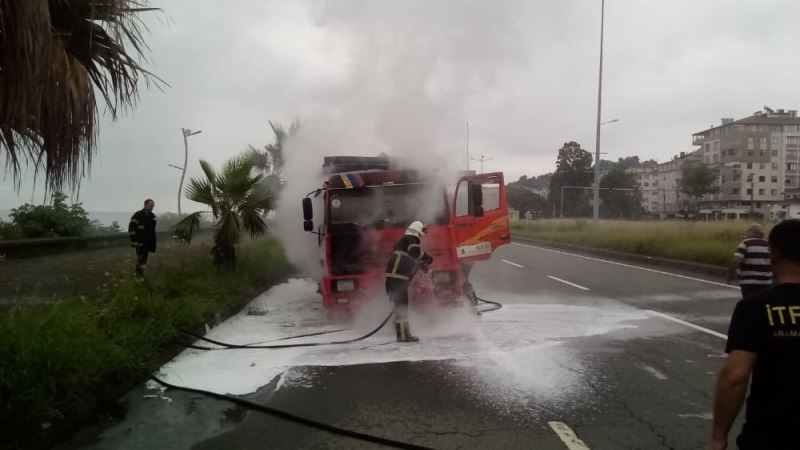 Alınan bilgiye göre, Artvin’den Rize istikametine gitmekte olan Mecit K. yönetimindeki 06 VRP 08 plakalı taş yüklü kamyon, Ardeşen ilçesinde seyir halindeyken bir anda sağ ön lastiğinin bulunduğu yerden alev alev yanmaya başladı. Yol kenarında duran kamyon şoförü hemen itfaiye ekiplerini çağırdı. Olay yerine gelen itfaiye ekipleri yangını sıka sürede söndürürken, araçta büyük maddi hasar meydana geldi.