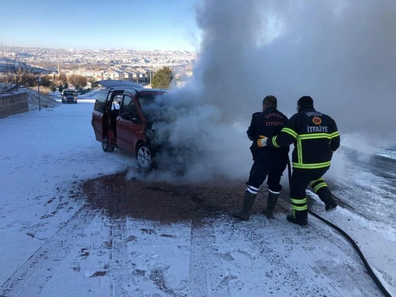 Nevşehir’in Ürgüp ilçesinde seyir halinde bir araç alev alev yandı. Yanmaya başlayan aracı Ürgüp Belediyesi itfaiye ekipleri söndürdü.