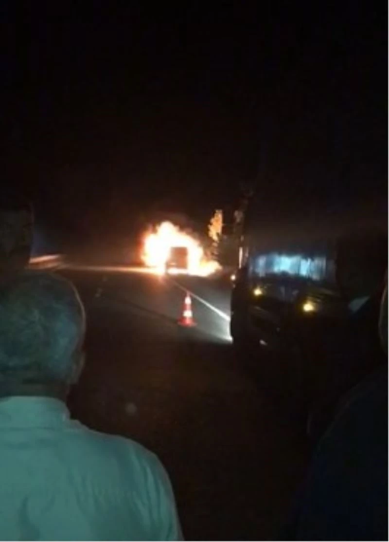 Kastamonu-Ankara karayolu Ilgaz Dağı mevkiinde seyir halindeki araç alev alev yandı.