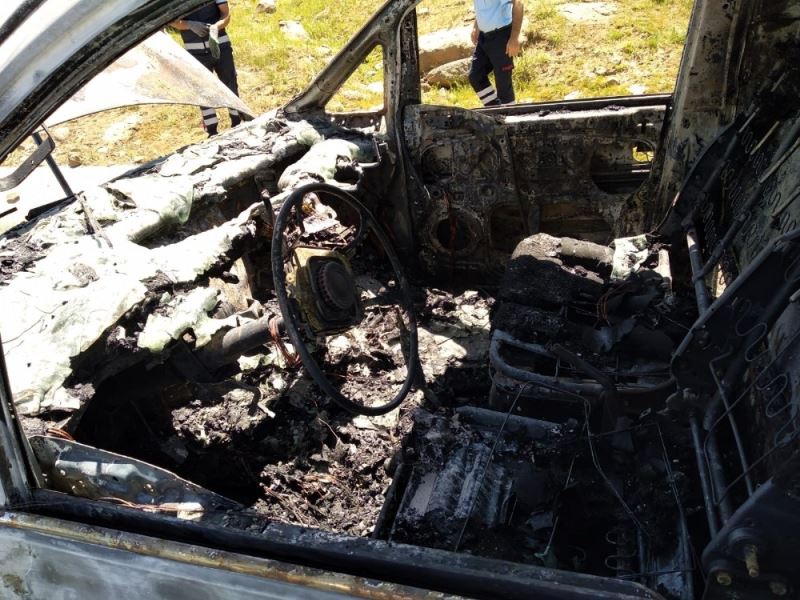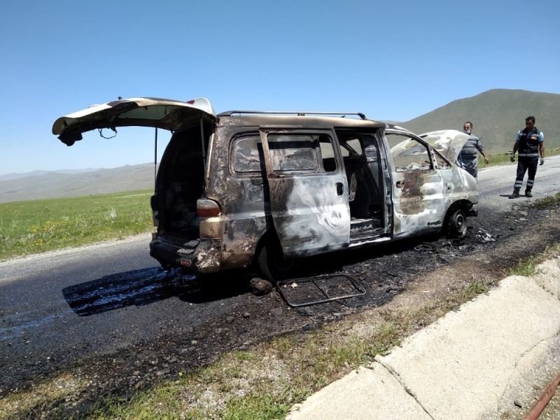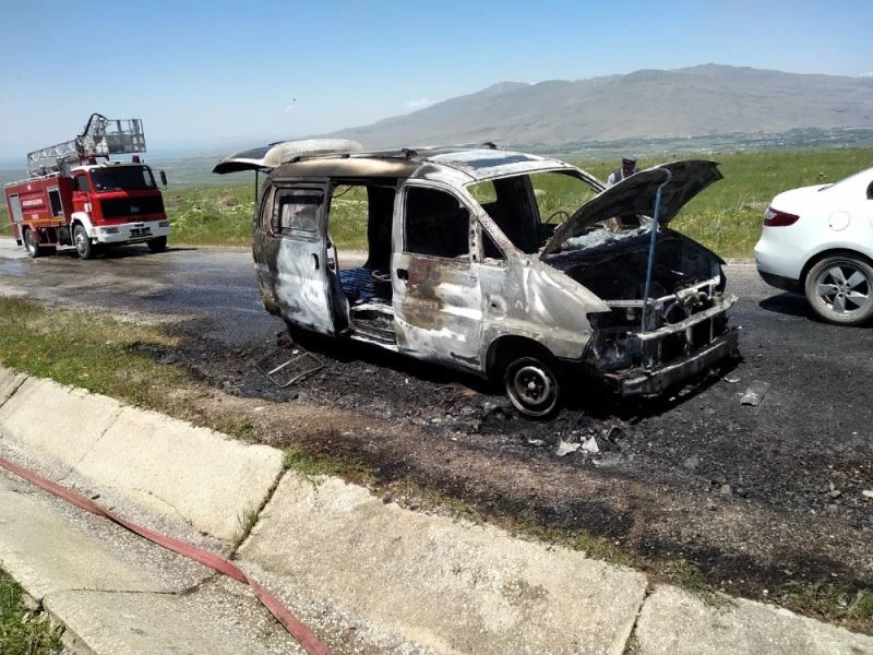 Van’ın Muradiye ilçesinde seyir halindeyken alev alan araç kullanılamaz hale geldi.