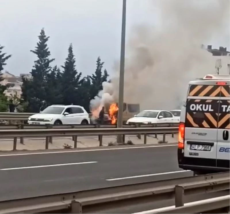 Kocaeli’nin Gebze ilçesinde seyir halindeki panelvan araç alevlere teslim oldu. Yangını son anda fark eden sürücü şans eseri yara almadı.