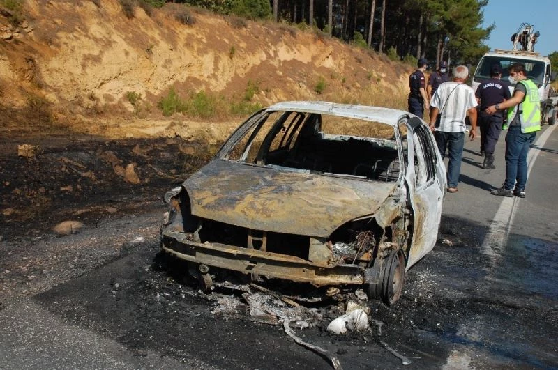 Seyir halindeki araç aniden alev aldı, yangın otluk alana sıçradı