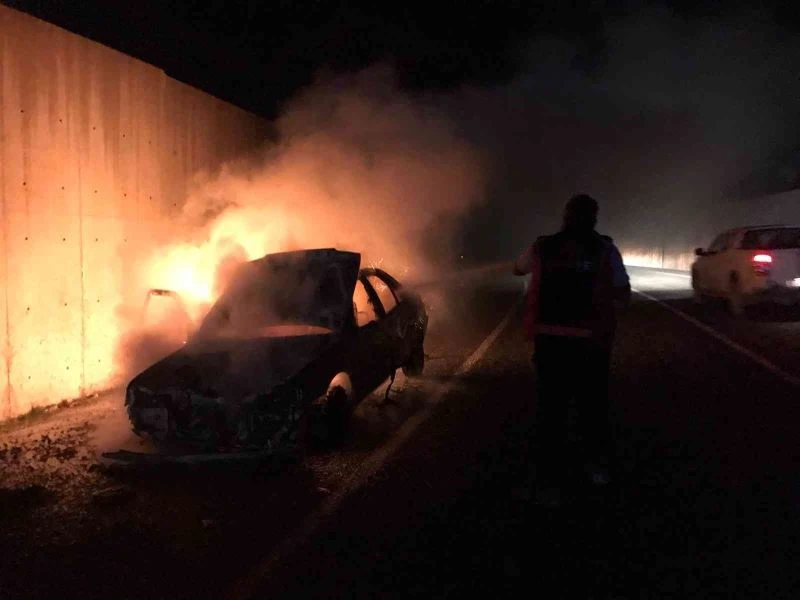 Sürücü ve yanındaki bir kişi, can havliyle kendilerini araçtan dışarı attı. Alevler kısa sürede tüm otomobile yayıldı.