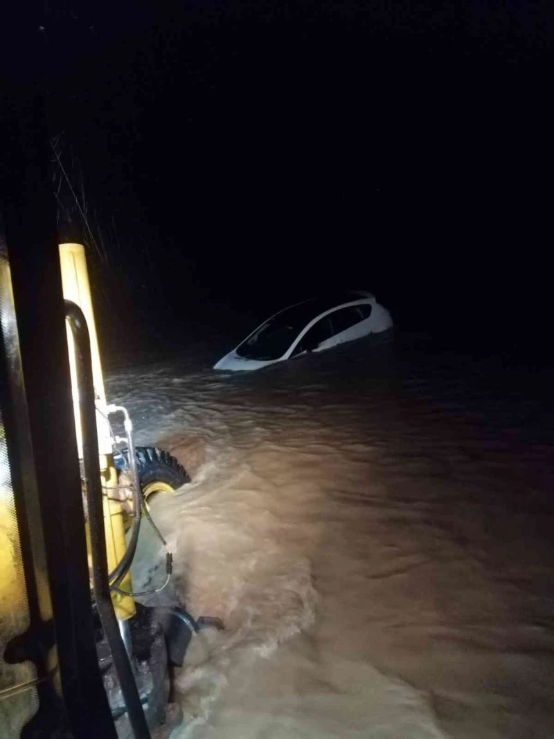 Seyir halindeki araç sel sularının ortasında kaldı