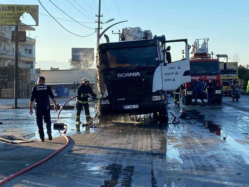 Edinilen bilgiye göre, D400 karayolunda beton firmasına ait bir tırın lastikleri alev aldı. Alevler kısa sürede büyüyerek aracı sararken, gökyüzünü dumanlar kapladı. Olay sonrası ihbar üzerine Antalya Büyükşehir Belediyesi Serik İtfaiye birimi ekipleri sevk edildi. Uzun süre trafiğin aksadığı yolda yanan araç söndürüldü.