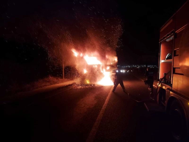Olay, Çerkezköy-Çorlu yolu üzerinde Veliköy Mahallesi’nde meydana geldi. Edinilen bilgilere göre motor kısmı seyir halindeyken alev alan kamyon, sürücüsünün durumu fark etmesi ile yol kenarına çekildi. Sürücü durumu itfaiye ekiplerine bildirdi. Olay yerine gelen itfaiye ekipleri, müdahale ederek yangını kısa sürede söndürdü. Kamyon kullanılamaz hale gelirken, olayla ilgili inceleme sürüyor.