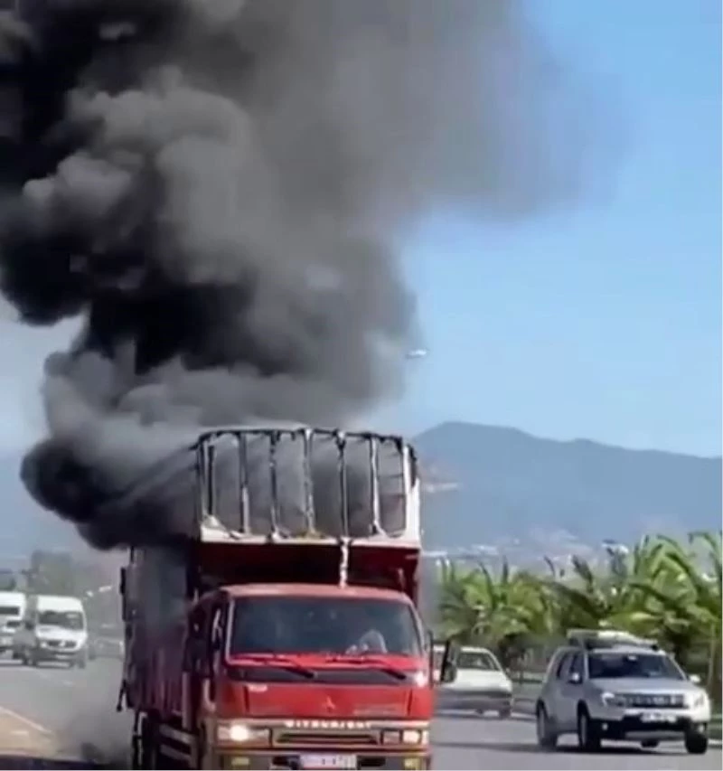 Edinilen bilgiye göre, Alanya ilçesinde seraya muz yüklemeye giden kamyon, Türkler Mahallesi’nde hareket halindeyken bir anda kasasındaki süngerler alev aldı. Kamyonda bulunanlar aracı terk ederek uzaklaşırken, yoldan geçen vatandaşlar, alevlere teslim olan kamyona yaklaşamadı. İtfaiye yangına müdahale etmesine rağmen araç tamamen yandı. Sürücünün Konaklı Mahallesi’nde sanayi sitesinde tentesine kaynak yaptırdığı, muz sarmak için kasada bulunan süngerlerin sıçrayan kaynak sonucu alev aldığı öne sürüldü. Öte yandan yangın anı vatandaşların cep telefonu kameralarına yansıdı.
