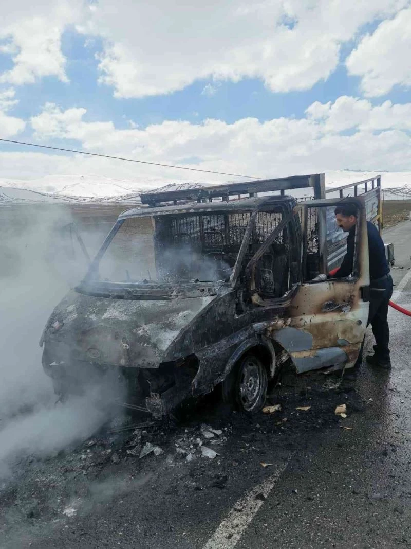 Van-Özalp karayolu üzerinde seyreden bir kamyonet alev alev yanarak kullanılamaz hale geldi.