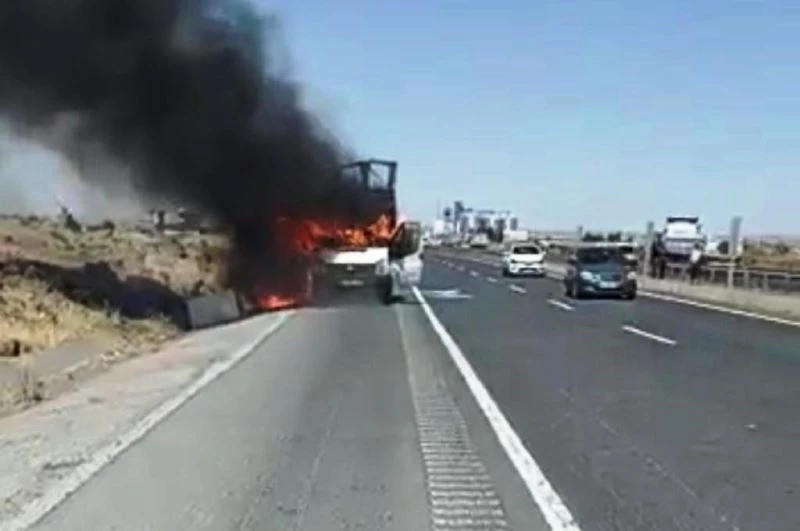 Mardin’in Derik ilçesi uluslararası İpek yolunda seyir halindeki kamyonet alevlere teslim oldu.
