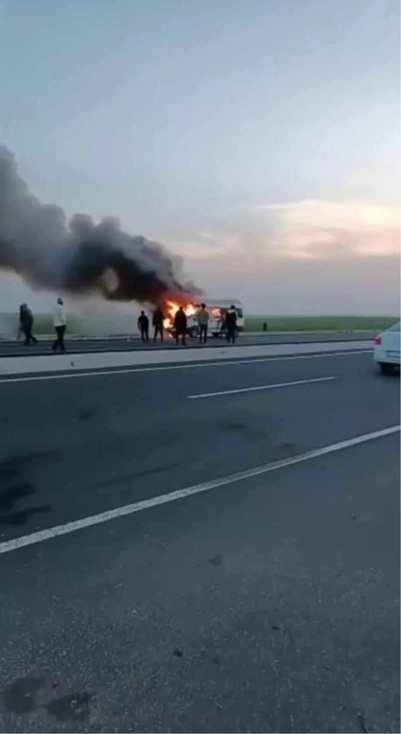 Mardin’de seyir halindeyken alev alan minibüs kullanılamaz hale geldi.
