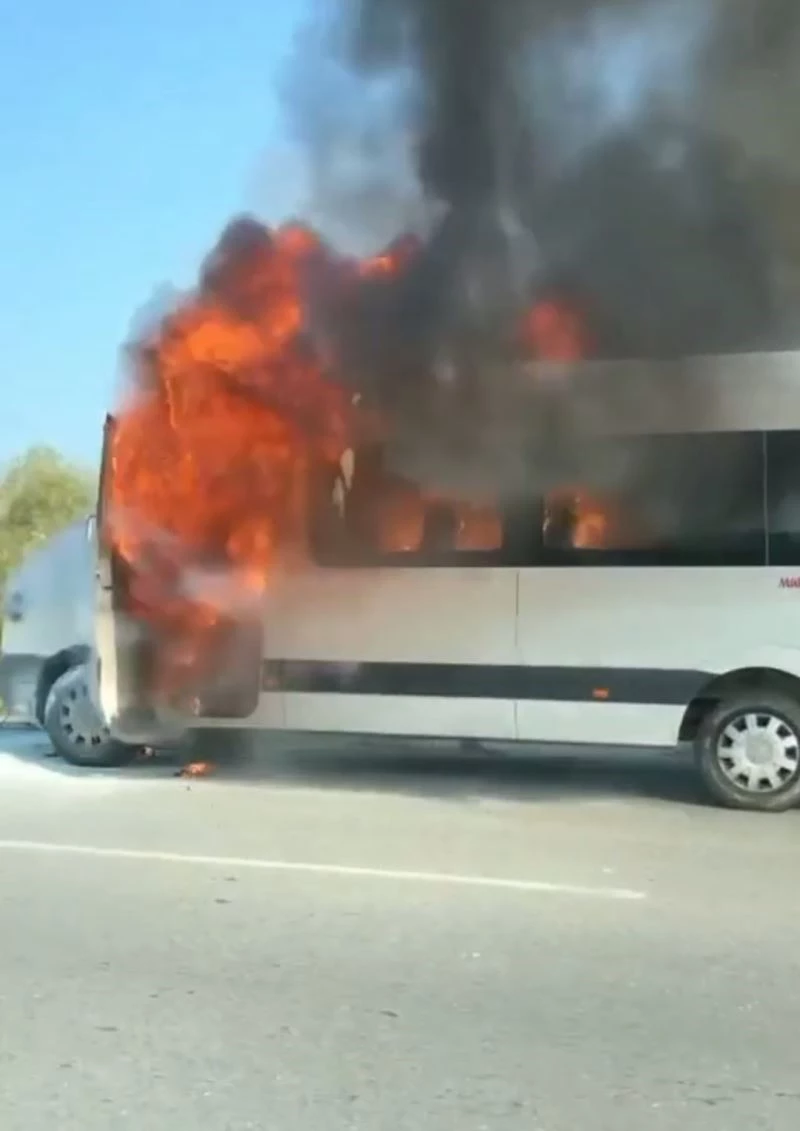 Edinilen bilgiye göre, Mudanya istikametine doğru ilerlediği sırada aldığı kokuyla araçtan inen servis minibüsü şoförü, aracı yolun sağına çekti. Minibüsün ön kısmından yükselen dumanların ardından araç bir anda alev topuna döndü. 3 şeritli yol kontrol amaçlı tek şeride indirilirken, yaşanan korku dolu anlar vatandaşların cep telefonu kamerasına yansıdı.