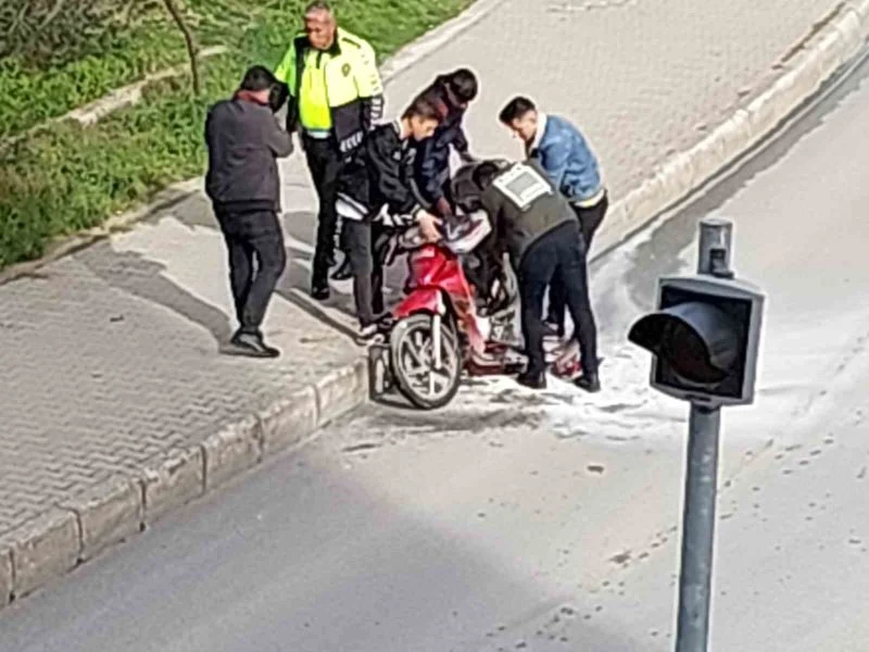 Çorum’un Sungurlu ilçesinde seyir halindeki motosiklet alev aldı. Sürücülerin yardımıyla alev alan motosiklet söndürüldü.