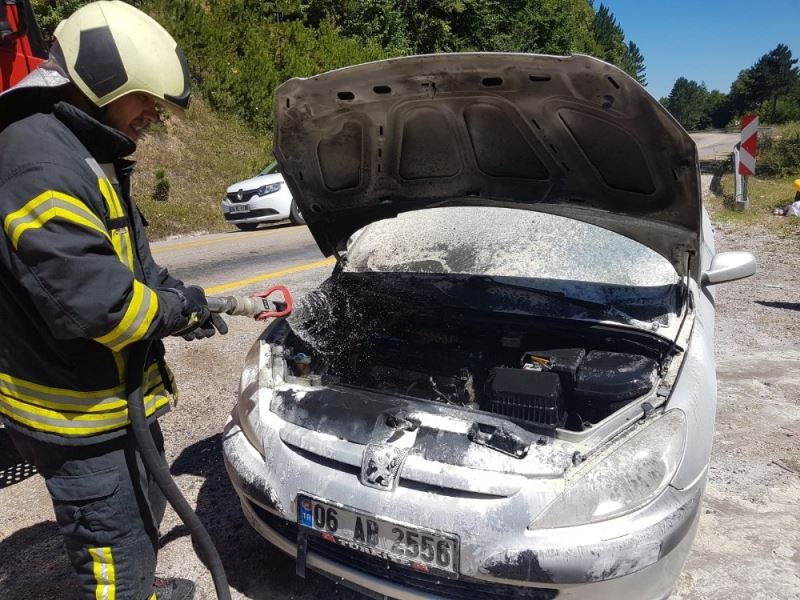 Karabük-Bartın karayolunda seyir halinde olan bir otomobil alev aldı. Vatandaşların ve itfaiyenin müdahalesi ile söndürülen yangında otomobilde maddi hasar oluştu.