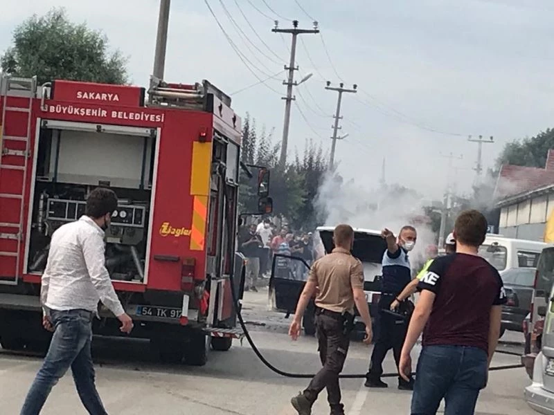 Sakarya’nın Akyazı ilçesinde seyir halindeki otomobilde çıkan yangın itfaiye ekiplerinin müdahalesi sonrasında söndürüldü.