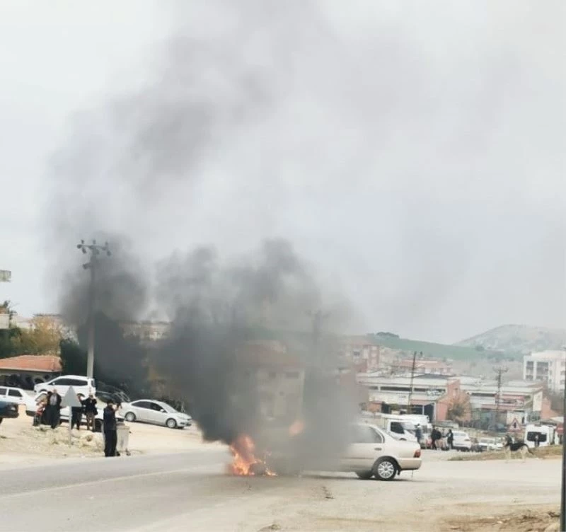 Adıyaman’ın Besni ilçesinde seyir halinde olan bir otomobil yandı.