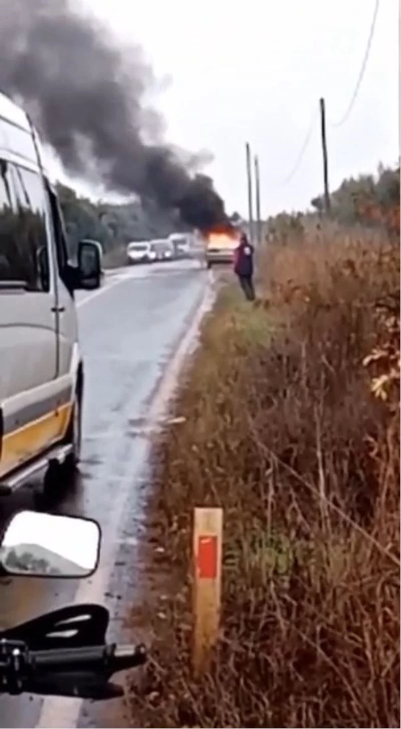 Edinilen bilgiye göre seyir halindeyken kaputundan çıkan dumanları gören otomobil sürücüsü aracını hemen kenara çekti. Sürücü araçtan iner inmez otomobil alev topuna döndü. Olayı gören çevredeki vatandaşlar itfaiye ekiplerine ihbarda bulundu. Araç sürücüsü yanan aracını izlerken, bir yandan da telefonla konuştu. Olay yerine gelen itfaiye ekipleri yanan aracı kısa sürede söndürdü. Olay yerine gelen çekici yardımıyla yanan araç yoldan kaldırıldı.