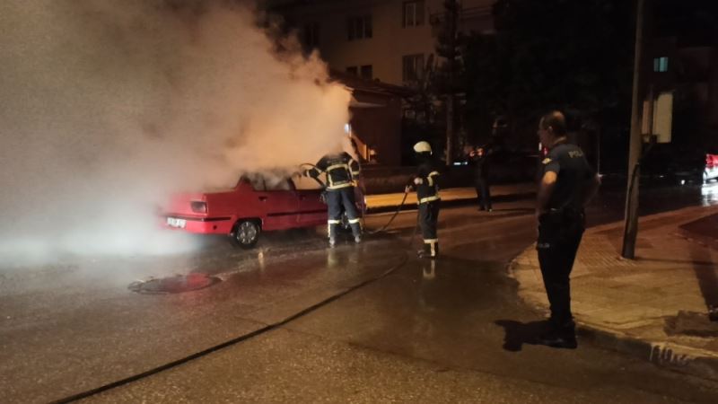Çorum’da seyir halindeki otomobil alev alev yandı.