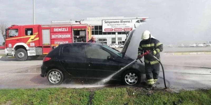 Denizli’de seyir halinde olan otomobil bir anda alevlere teslim oldu. Sahibinin söndürme çabaları yetersiz kalırken, bölgeye gelen İtfaiye ekiplerinin müdahalesiyle araç söndürüldü.