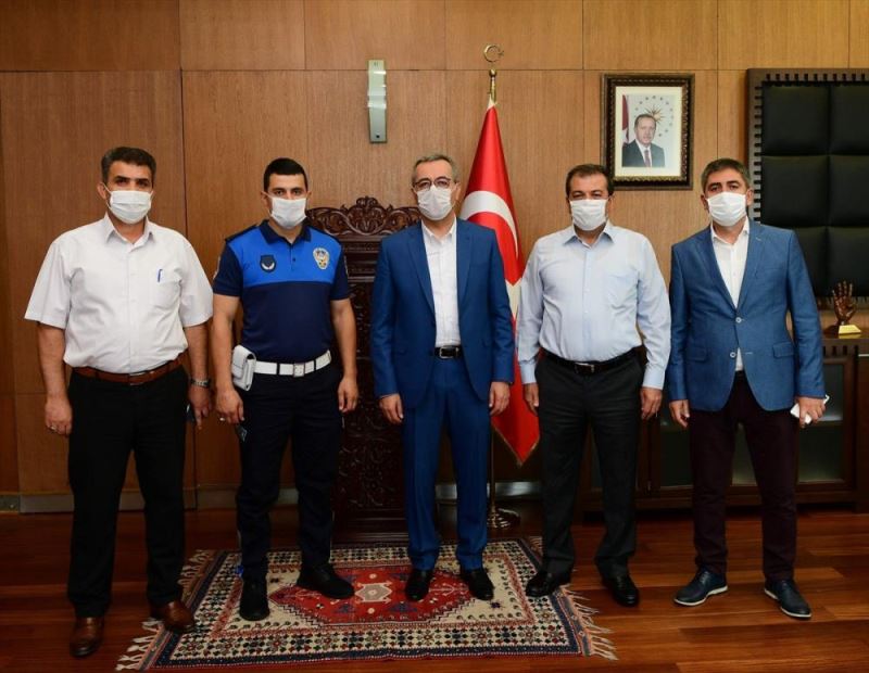 KAHRAMANMARAS (AA) - Kahramanmaras Büyüksehir Belediye Baskani Hayrettin Güngör, seyir halindeki otomobilde çikan yangini söndüren zabita Enes Dogan'i altinla ödüllendirdi.