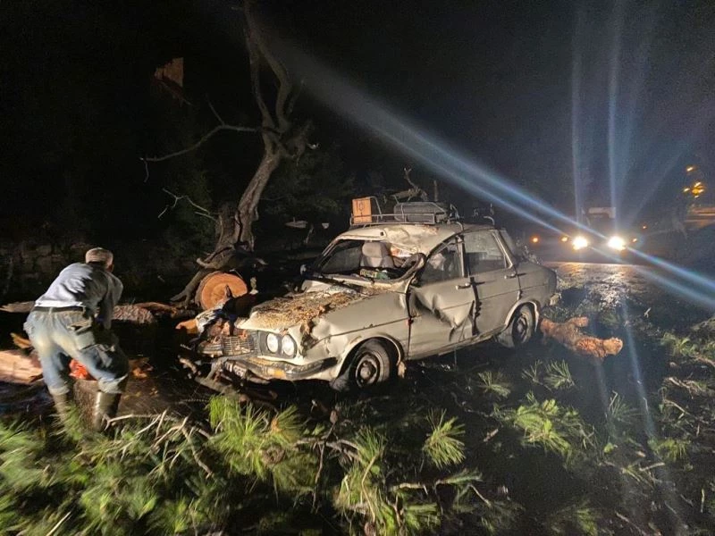 Seyir halindeki otomobilin üzerine ağaç devrildi: 2 yaralı