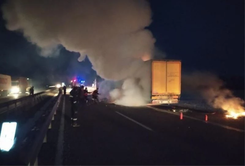 Sivas’ta seyir halindeki tır alev aldı, dorsede bulunan malzemeler zarar gördü.