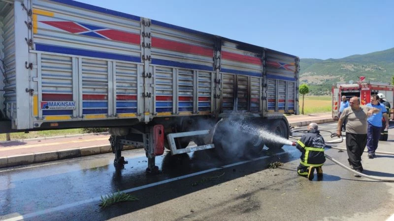 Seyir halindeki tırın lastikleri alev aldı, faciayı sürücü önledi