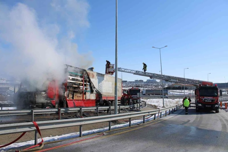 Kayseri’de yatak ve ahşap yüklü seyir halindeki tır yandı. Yangın, yaklaşık 1 saatlik çalışma sonucu söndürüldü.