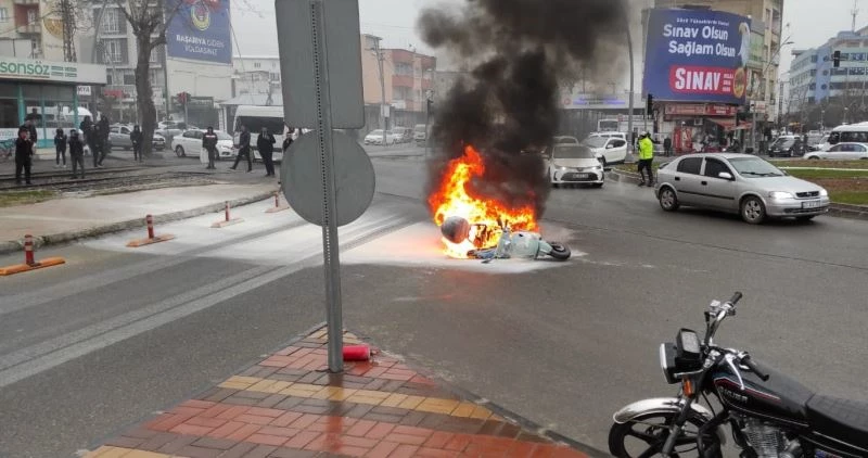 Olay, akşam saatlerinde Batman Meydan Mahallesi Milli Egemenlik Caddesi Belediye kavşağında meydana geldi. Edinilen bilgilere göre, seyir halinde olan sürücüsünün kimliği ve plakası henüz öğrenilemeyen motosiklet aniden alev alarak yere düştü. Sürücüsünün yardım talep etmesi üzerinde olay yakın olan polis ekipleri ve belediye temizlik personelleri, yanan motosiklete yangın söndürme tüpü ve belediye aracında bulunan su ile müdahale ederek söndürdü. Can kaybının yaşanmadığı olayda motosiklet tamamen yanarak kullanılamaz hale geldi.