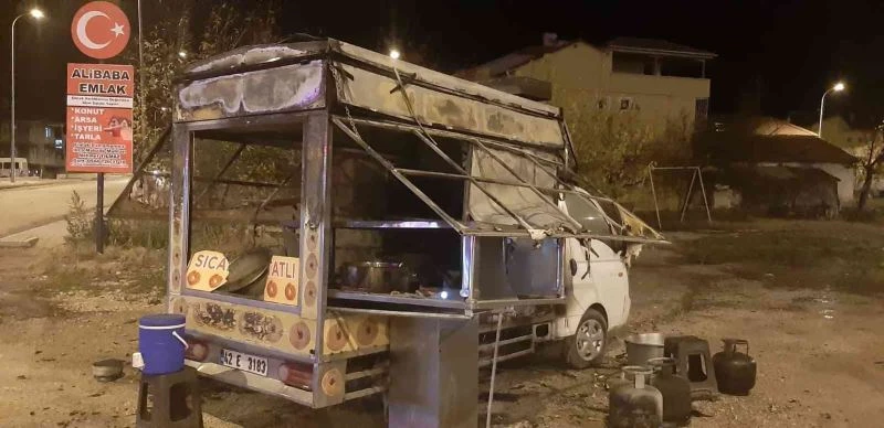 Afyonkarahisar’ın Dinar ilçesinde seyyar tatlı satışı yapılan kamyonette tüp parlaması meydana geldi. Kamyonetten yükselen alevler gecenin karanlığını aydınlattı.