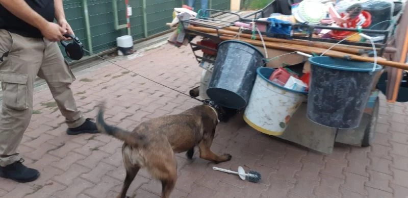 Adana Emniyet Müdürlüğü Narkotik Suçlarla Mücadele Şube Müdürlüğü ekipleri, merkez Seyhan ilçesine bağlı Şakirpaşa Mahallesi’nde plastik ev eşyası yüklü sepetli motosiklette esrar olduğu bilgisine ulaştı. Polis seyyar satıcıyı uygulama noktasında durdurup sepetli motosikletinde hassas burunlu narkotik köpeği ile arama yaptı. Motosikletin sepet kısmında plastik ürünlerin altında 24 paket halinde 77 kilo 450 gram esrar ele geçirildi.