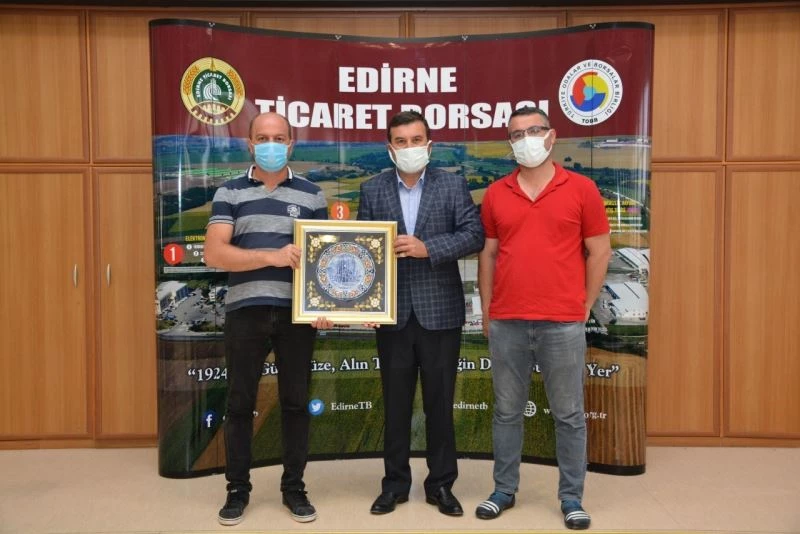 ETB Meclis Başkanı Fedai Canım, üretici Hasan Çekili’yi kutlayarak, günün anısına Edirne toprağından yapılan Selimiye Camii motifli seramik plaket ile 100 litre mazot hediye etti.