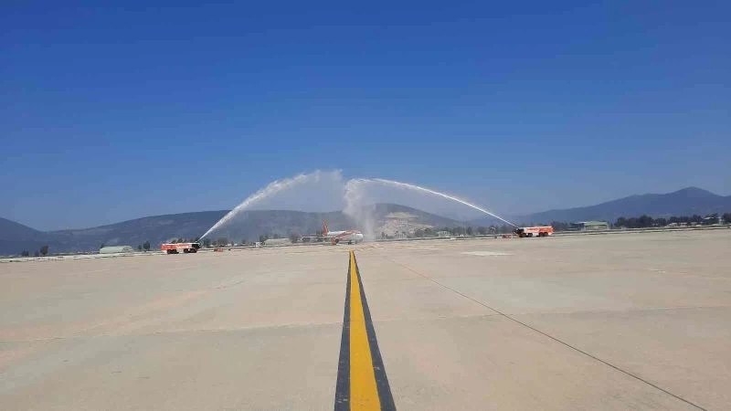 Milas-Bodrum Havalimanı’na sezonun ilk dış hat uçuşu, İngiltere’den yapıldı. Bristol’den gelen uçak, su takıyla karşılandı.
