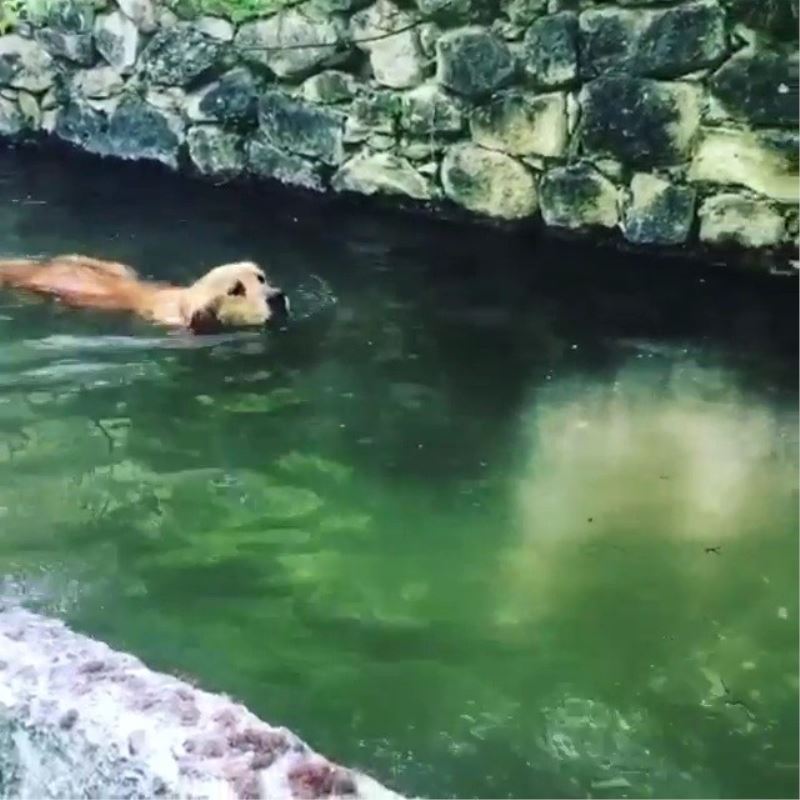 Karabük’te 4 gündür etkili olan hava sıcaklıkları insanlar kadar hayvanları da büyük oranda etkilemeye başladı. Hava sıcaklığının 37 dereceye ulaştığı Karabük’te “Paşa” isimli köpek kendini köy çeşmesinin su dolu oluğuna girip yüzerek serinlemeye çalıştı. O anlar ise köpeğin sahibi tarafından cep telefonuna kaydedildi.