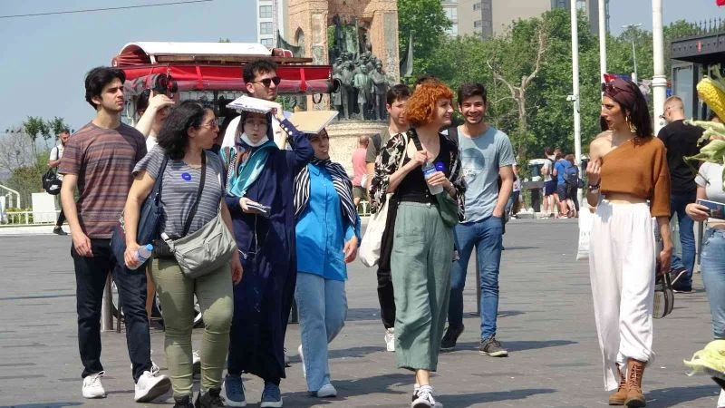 İstanbul’da hafta sonu sıcakların artması ile turistler ve vatandaşlar Taksim’e akın etti.