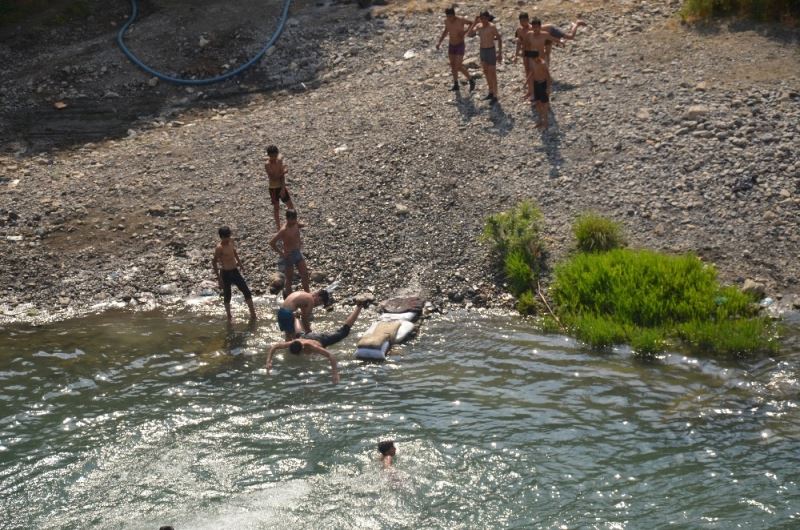 Şırnak’ın Beytüşşebap ilçesinde aşırı sıcaklardan bunalan gençler, serinlemek için su kenarlarına akın etti.