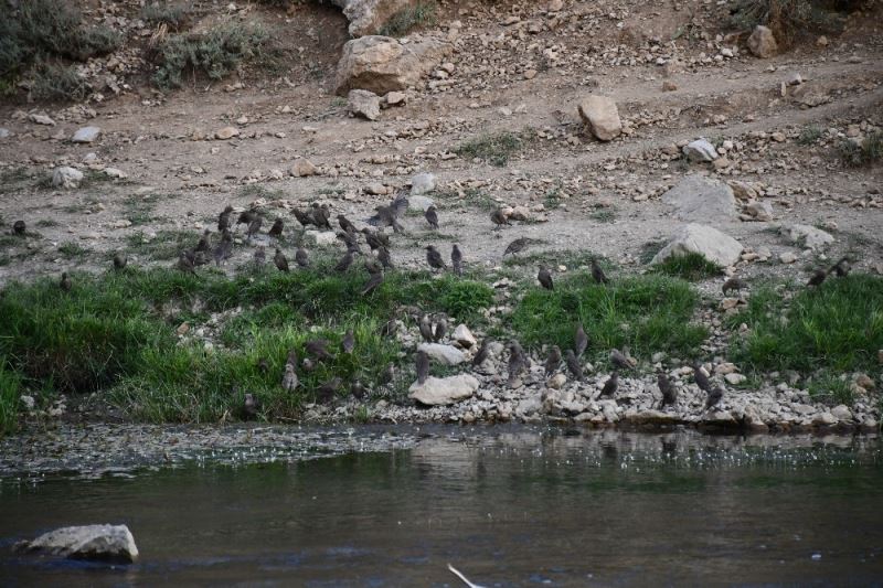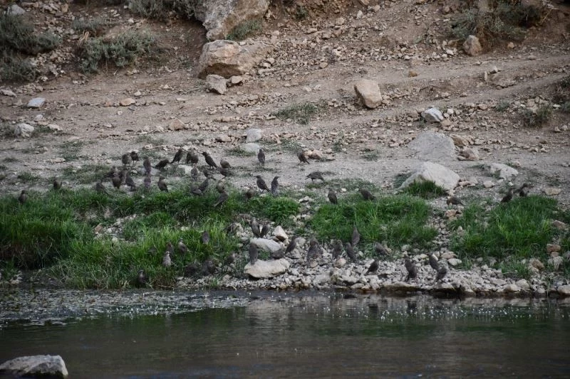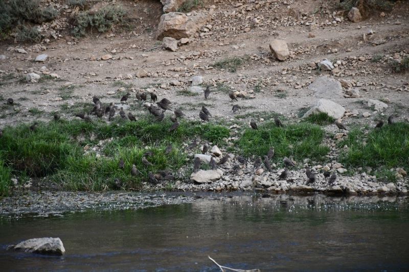Beytüşşebap’ta aşırı sıcaklar nedeniyle dere kenarına inen yüzlerce kuş buz gibi sularda serinlemeye çalıştı. İlçeden geçen Habur Çayı ve Yeşilöz Deresindeki buz gibi sularda serinlemeye çalışan kuşlar dere kenarında toplanıp bir bir suya daldı.