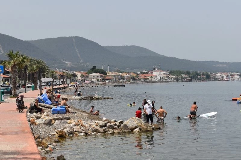 İzmir’in Urla ilçesinde, 14 yaş altı çocuklara verilen izni fırsat bilen ve sıcaktan bunalanlar plajlara akın etti.
