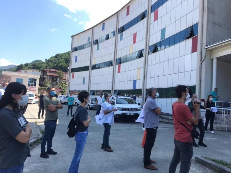 Artvin’de Covid-19 hastası tarafından şiddet gören hekim için sağlık çalışanları hastane önünde basın açıklaması düzenledi.