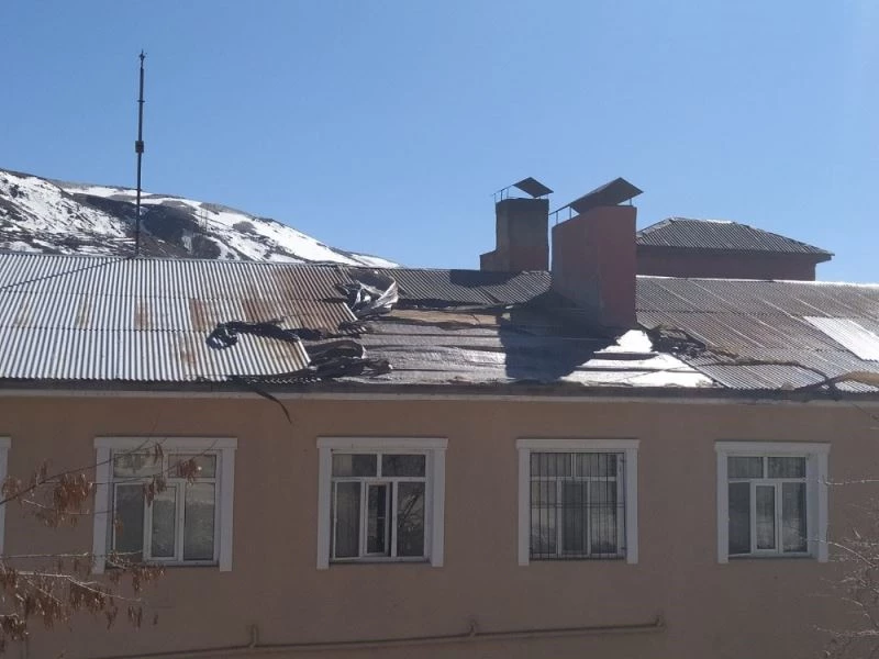 Adıyaman’ın Çelikhan ilçesinde etkili olan şiddetli rüzgar nedeniyle Çelikhan Devlet Hastanesi ve evlerin çatıları uçtu.