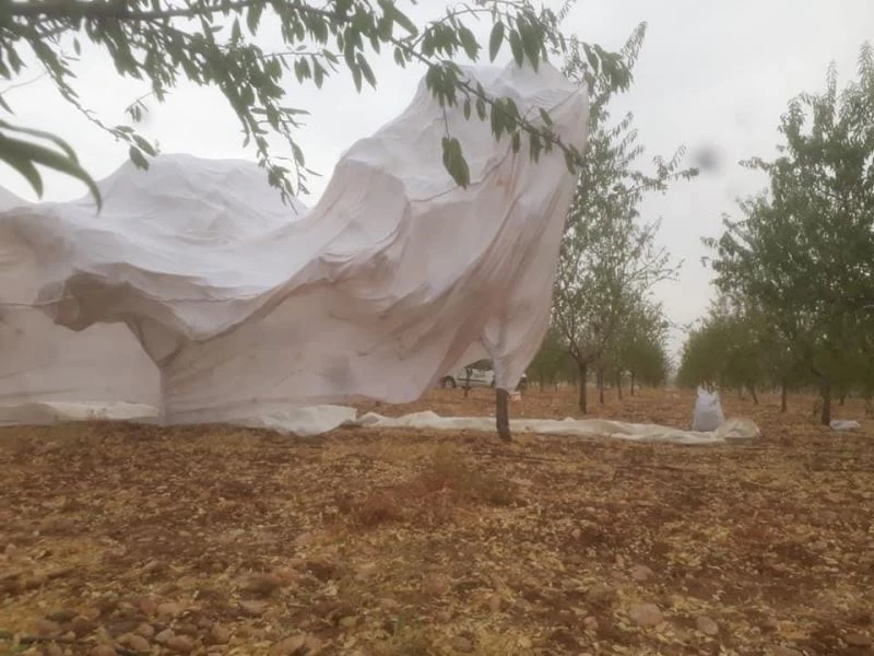 Kahta’ya bağlı İslam köyde şiddetli rüzgar badem hasadı yapan çiftçilerin bezlerini uçurdu. Badem hasadında kullanılan büyük bez parçaları şiddetli rüzgarla birlikte uçtu. Bez parçaları badem ağaçlarına takılırken, hasat yapan çiftçiler zor anlar yaşadı.