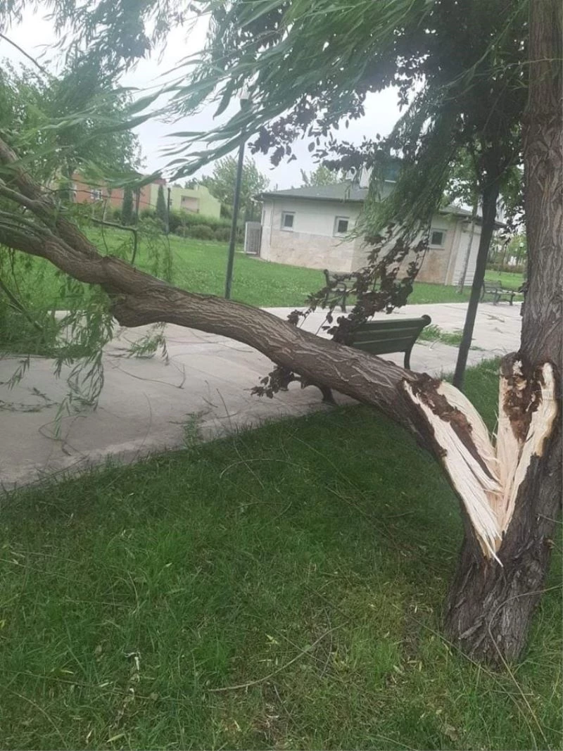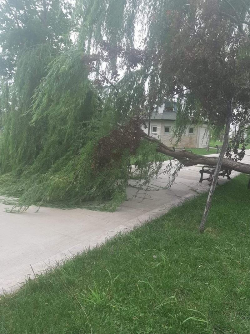 Diyarbakır’ın Çınar ilçesinde yaşanan şiddetli rüzgar nedeniyle parkta bulunan bir ağaç kırıldı.