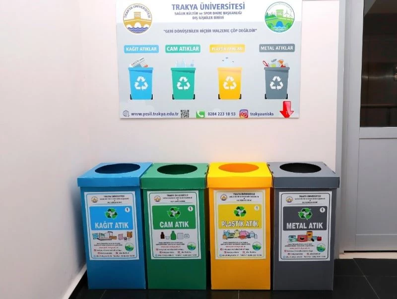 Kaynakların sağlıklı ve verimli biçimde kullanılması, atıkların kaynağında ayrıştırılması ve geri kazanımının sağlanması amacıyla büyük atılımlar gerçekleştiren Trakya Üniversitesi, tüm birim ve alanlarında yürüttüğü sıfır atık çalışmalarına hız verdi. Bu kapsamda, sıfır atık kumbaraları ve katı atık biriktirme kutuları yerleştiren Üniversitemiz çevre kirliliğinin önlenmesi, atık oluşumunun azaltılması ve yeşil bir üniversite için atıkları geri dönüşüme kazandırıyor. Sürdürülebilir kalkınma ilkeleri çerçevesinde atıkların kontrol altına alınması amacıyla yürütülen proje kapsamında Trakya Üniversitesi’ne verilen “Sıfır Atık Belgesi” 2025 yılına kadar geçerli olacak.